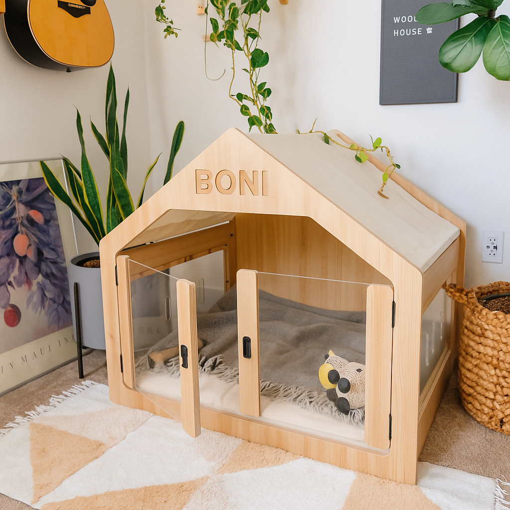 Nasz domek to nie tylko estetyka i wygoda- to również funkcjonalność i bezpieczeństwo, które docenisz już po pierwszym tygodniu użytkowania. Zamykana konstrukcja-dyskretne drzwiczki lub zdejmowany front pozwalają w razie potrzeby ograniczyć dostęp pupila do reszty domu, np. podczas wizyty gości, sprzątania czy wieczornego wyciszenia. Spokój w domu- wielu właścicieli psów zauważyło, że odkąd ich pupil ma swój domek, przestał podgryzać meble, dywany czy buty. Własna, wyraźnie wydzielona przestrzeń daje psu poczucie bezpieczeństwo, a to z kolei zmniejsza stres i potrzebę destrukcyjnych zachowań. Bez chemii, bez ryzyka- domek wykonany jest z naturalnych, bezpiecznych materiałów. Żadnych toksycznych farb, sztucznych tkanin czy elementów, które pupil mógłby połknąć. To szczególnie ważne w przypadku: szczeniaków, które dopiero uczą się zasad panujących w domu, zwierzaków z lękiem separacyjnym, pupili z dużą potrzebą ''kryjówki'', która daje im poczucie spokoju.