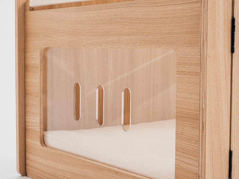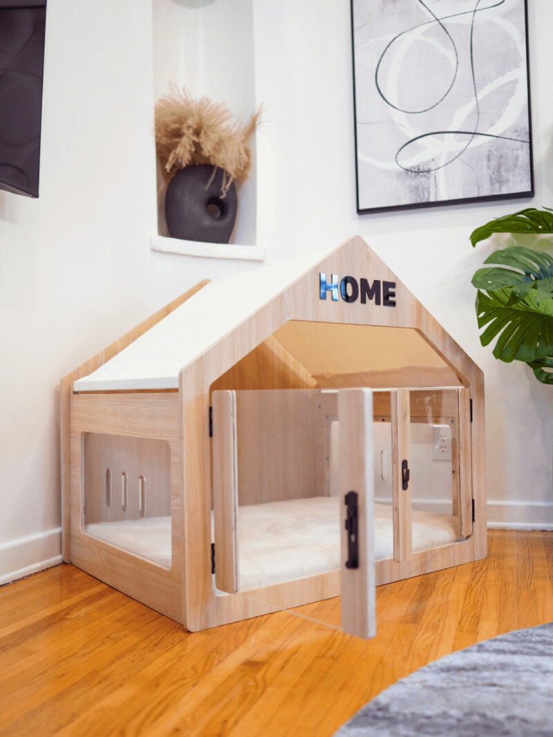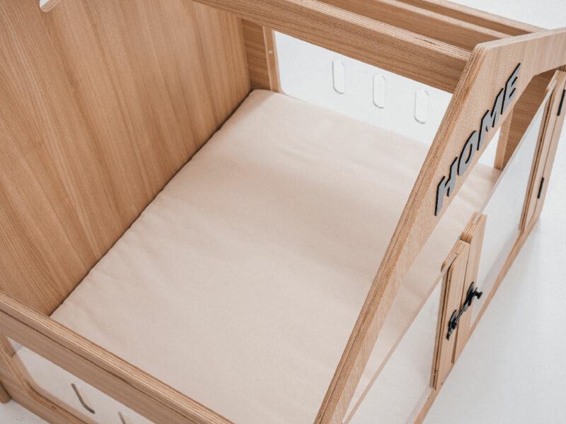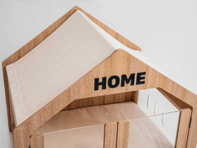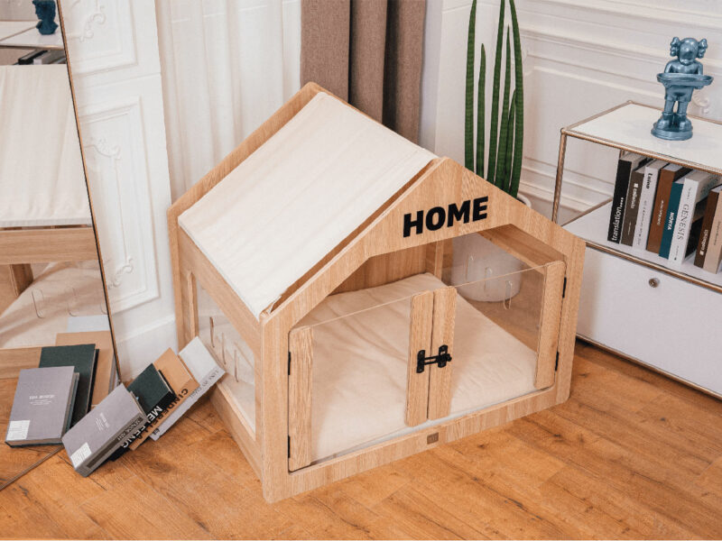 Podaruj swojemu czworonożnemu przyjacielowi domek, który stanie się jego własnym, ulubionym miejscem i osobistą przestrzenią! Stylowy domek dla psa i kota „HOME” to połączenie eleganckiego designu i funkcjonalności, które doskonale wkomponuje się w nowoczesne wnętrza. Wykonany z wysokiej jakości drewna, z przezroczystymi panelami i miękką poduszką wewnątrz – ten domek to nie tylko legowisko, ale prawdziwy mini-dom dla Twojego pupila.